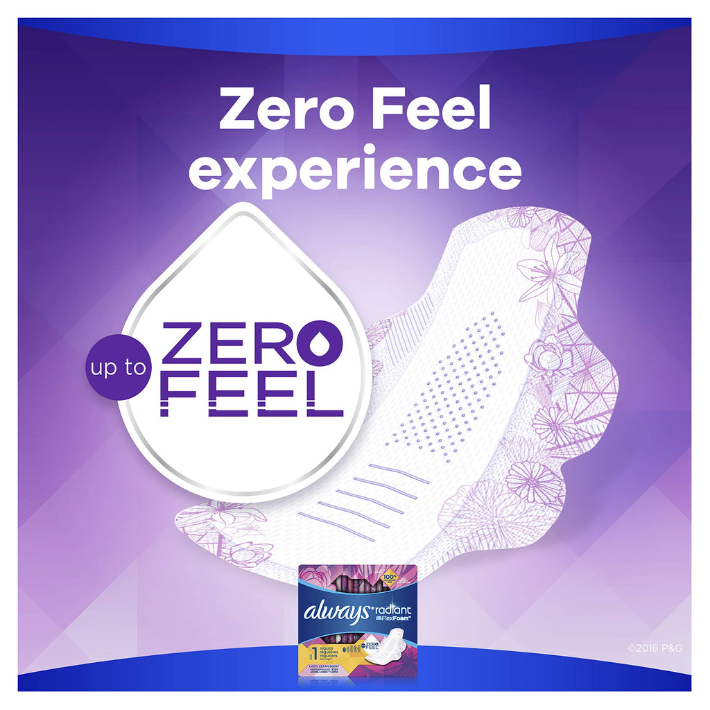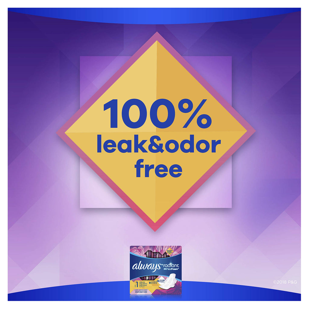 -Always Radiant Pads with Wings, Regular Light Clean Scent. -15 Pads/Pack. -2 Packs.