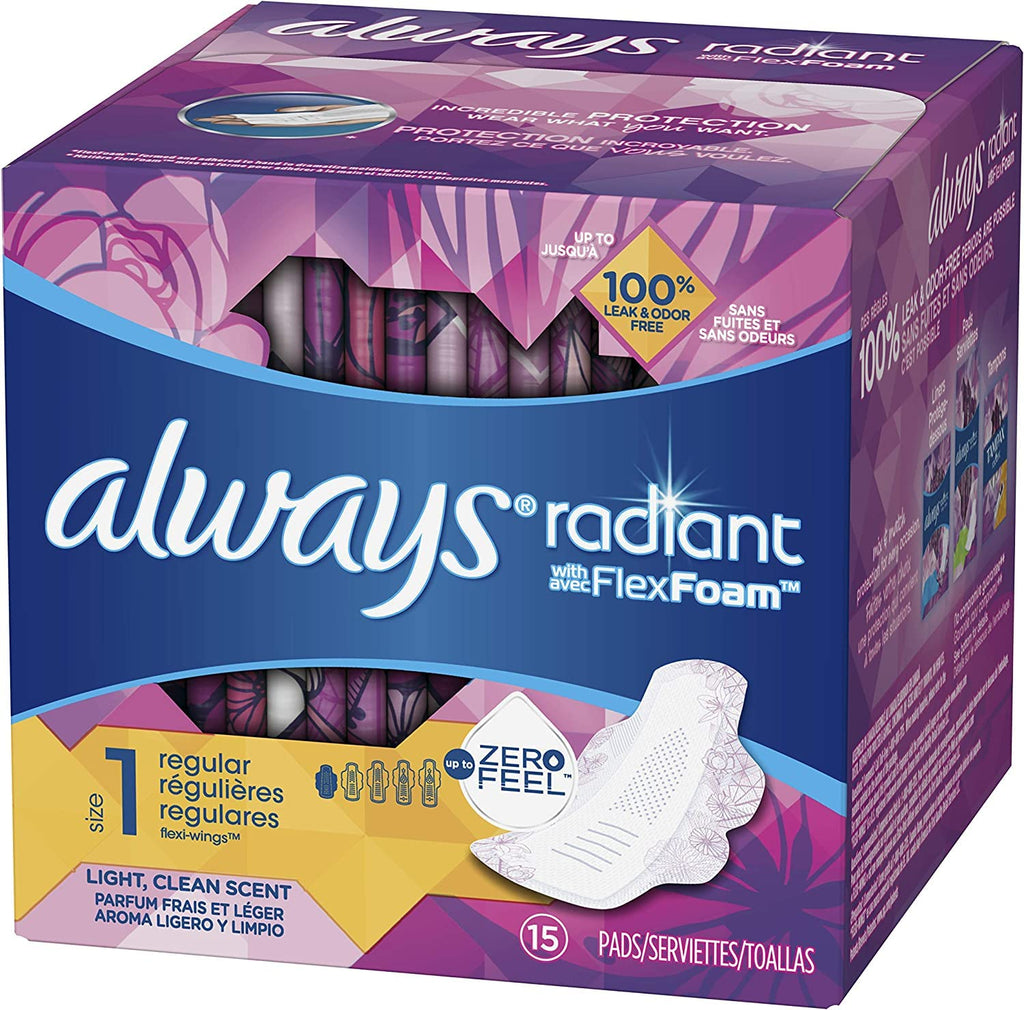 Always Radiant Pads with Wings, Scented. Sold as a (2-Pack), 30 Total Pads.