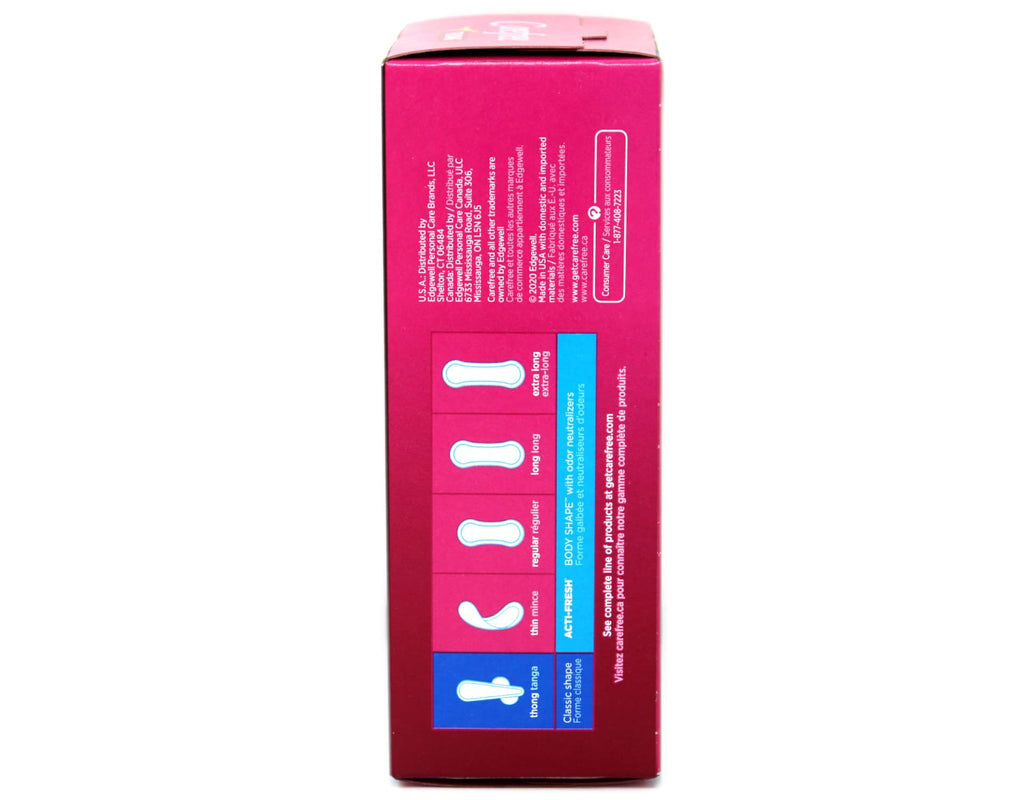 Sometimes, you dont want to compromise your style to accommodate your pantiliner. Thats why we created Carefree Thong Liners with stay put wings to keep your liner in place. Designed specially to fit your skimpiest, sexiest undies, Carefree Thong Liners have end-to-end adhesive to eliminate bunching and keep you moving.
