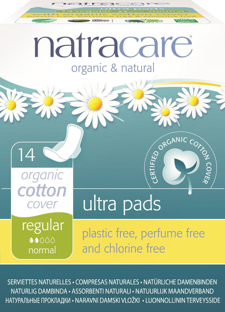 <i><B>Natracare Maxi Pads, Ultra Regular with Wings</b></i> <P><br>Women today are conscious of the need to restrict their contact with synthetic materials and unnecessary chemicals and additives. They are becoming more aware that most of the widely available sanitary pads sold today, contain a blend of chlorine-bleached pulp, polypropylene, polyacrylates and plastic.<P><br>For each monthly cycle, it makes sense to choose a pad that is made from natural materials. Many gynaecologists have advised women with sensitive skin to use natracare pads to reduce their contact with chlorine bleached materials, and also products containing synthetics, latex and super absorbents made from petrochemicals. Every year, billions of plastic laden pads are disposed of, and generally they end up in landfill sites to sit unaltered for hundreds of years. Every year, in Britain alone, we would have to dig a hole three hundred feet deep and three hundred feet wide to bury the sanitary pads that are thrown away.<br><P><br>Natracare chemical free pads are high quality products made from only pure and natural materials that are made from plant cellulose. They are not chlorine bleached and are free of rayon, plastics and other similar synthetic materials that have a negative impact on our environment. <P>The Ultra with wings is a slim pad with the added protection of wings. They are individually wrapped so that they can be kept discretely in your bag.