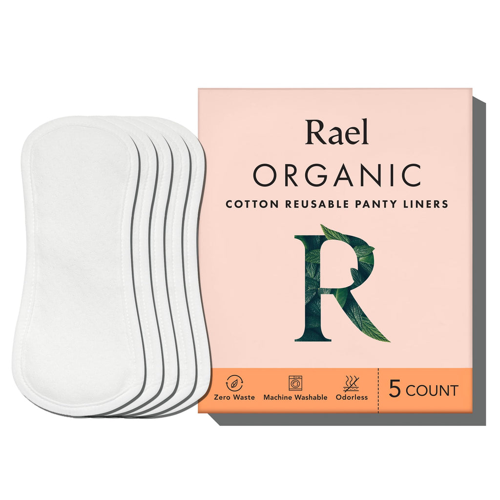Rael Reusable Panty Liners Menstrual, Organic Cotton Cover - Postpartum Essential, Cloth Panty Liners for Women, Washable, Soft and Thin, Leak Free, Sensitive Skin (5 Count, White)