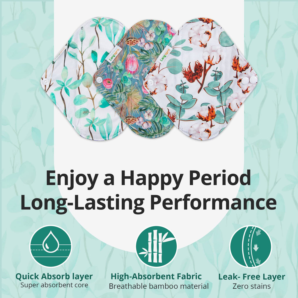• Q: What materials are the reusable sanitary pads made from? A: The reusable sanitary pads are made from bamboo, which is known for its softness and absorbency.