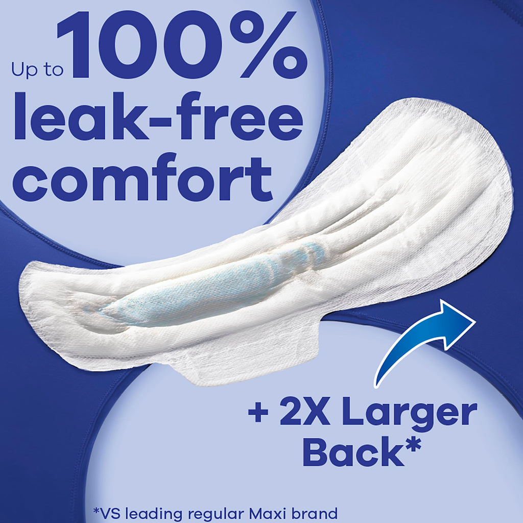• Q: How much coverage do these pads provide? A: These pads offer up to 100% leak-free comfort with 2X more back coverage compared to regular-sized pads, ensuring maximum protection during heavy flow nights.