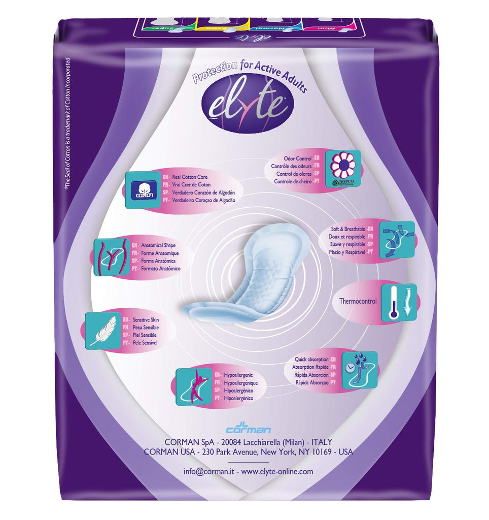 Corman is the only manufacturer in the world to provide Incontinence Pads made with 100% pure cotton. Cormans patented Elyte incontinence pads with 100% pure cotton will help prevent and alleviate skin irritations and rashes that may be caused by current products. It is naturally absorbent, breathable, soft and comfortable.