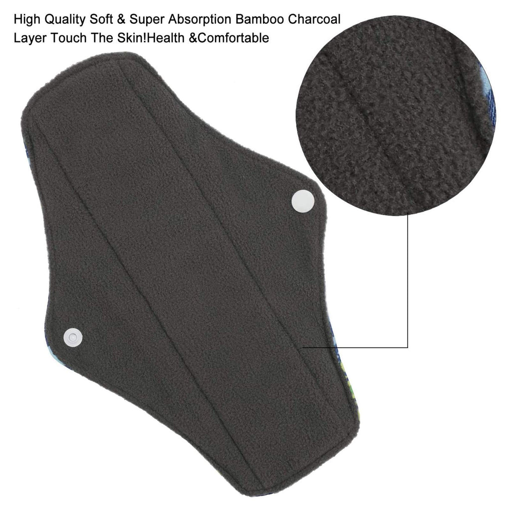 Feature: * Washable and reusable, which is cost-effective and practical * Material: Bamboo Charcoal Fiber + Ultrafine Fiber * Size: 10x7 inch * Color: As the picture shows Why choose washable cloth menstrual pad? a. Eco-friendly: washable and reusable b. Economical: can use for 3-5 years c. Healthy: simply organic, does not contain bleach d. Soft: thanks to the comfortable bamboo e. Safe: its inner layer is leak proof f. Easy to clean: rinse in cold water, machine wash and just dry How to wash and dry? Pls contact with us if you want more details regarding washing. 1. Please wash it before using the first time. 2. If there are dirt on it, you can add a little salt in cold or warm water (do NOT use hot water as this can set any dirt) to wash by hand or machine. If you are not planning to wash right away, you can soak your cloth menstrual pad or let them dry until your next laundry. 3. Expose it to the hot sun. Do not iron use bleach or fabric softener, because it can reduce the service life of menstrual pads, harmful to the body at the same time. Package Include: * 7 x Menstrual Panty Pad * 1 x Wet Bag for Storage* 1 x Gift Box Notes: ** Please allow 1-3mm error due to manual measurement. Thanks for your understanding. ** Not positioning printing.