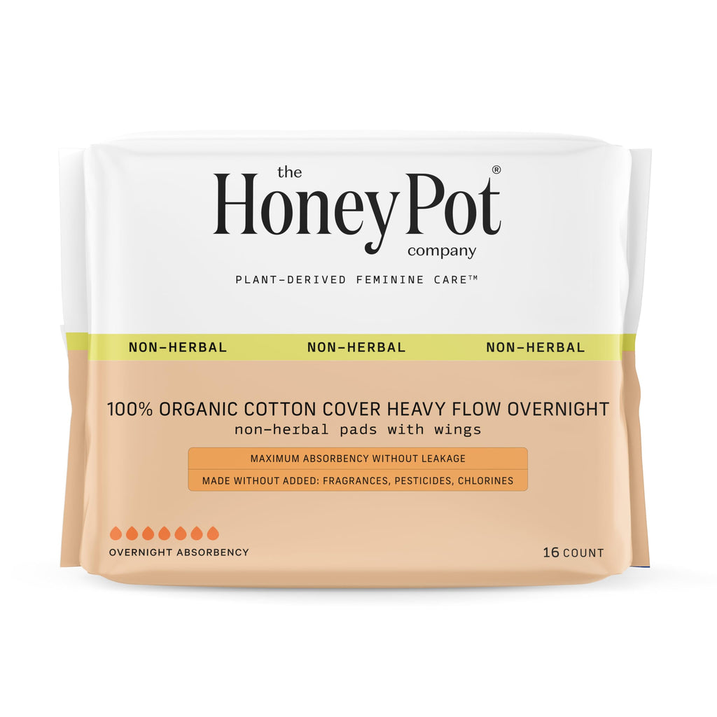 We see you. Weve listened. And we understand. Heavy flows are no fun. In fact, they can cause you to dread your period and can be the byproduct of larger medical challenges. Thats why we created honeypot approved non-herbal pads with supreme absorbency to ensure you are secure and protected throughout your cycle. Use these organic cotton heavy flow overnight pads for comfort and confidence when finishing up your nighttime routine and heading to dreamland (no need to stress about morning after stains!). These non-herbal, hypoallergenic overnight sanitary pads have a super soft OCS certified organic cotton cover and ultra-absorbent pulp core which ensures maximum comfort and minimal leakage. Heres to a new relationship with your pads.