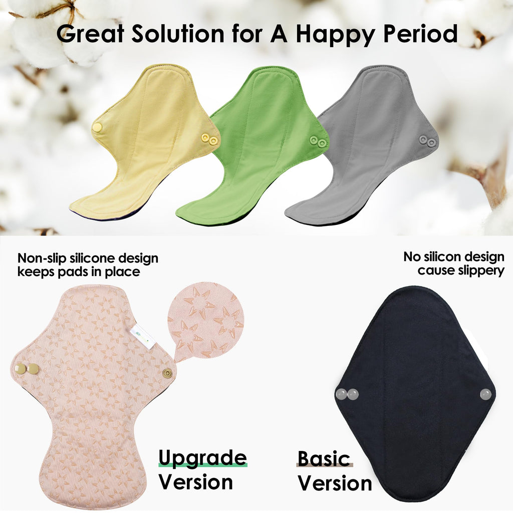 • Q: Do these pads have a non-slip design? A: Yes, the wegreeco menstrual pads feature a non-slip design with silicone dots on the leak-free side to keep them securely in place against your underwear.