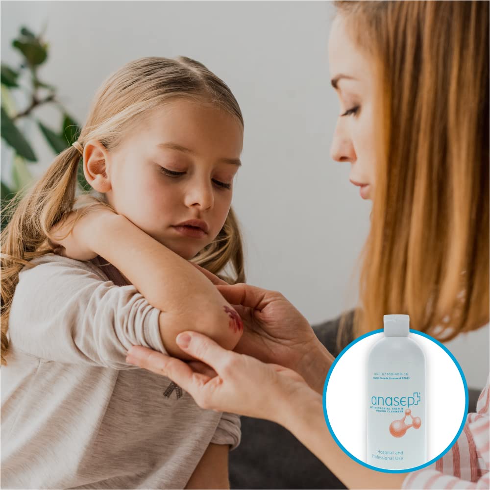 • Q: Is Anasept Skin and Wound Cleanser effective for surgical wounds? A: Yes, Anasept Skin and Wound Cleanser is a medical-grade product commonly used in hospitals to effectively cleanse and care for surgical wounds.