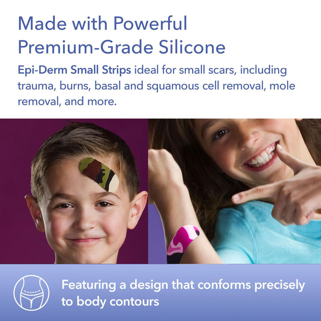 • Q: What are EpiDerm Silicone Gel Scar Small Strips made of? A: EpiDerm Silicone Gel Scar Small Strips are made with premium-grade, fabric-lined silicone, ensuring comfort and flexibility.