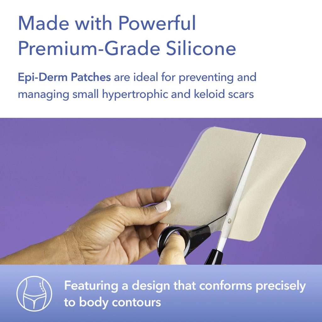 Introducing Biodermis' Epi-Derm silicone patches for scars, a revolutionary product in the field of scar management. These patches are specifically designed to manage and prevent small hypertrophic and keloid scars. The silicone scar sheets can be conveniently cut to size to suit your needs. They are available in two variants - the original Epi-Derm clear and the fabric-lined Epi-Derm Natural. These silicone patches for scars help to reduce, flatten, fade, and smooth scars, making them effective for both old and new scars. What sets Epi-Derm silicone patches apart from the competition is their comfort and adaptability. They are significantly thinner than other brands in the industry, allowing them to conform precisely to body contours for a seamless fit. Whether you are looking for silicone scar sheets for surgical scars, c-section scar silicone strips, or silicone scar strips for any other small keloid and hypertrophic scars, Epi-Derm by Biodermis is your go-to solution. Experience the advanced silicone scar sheets that are trusted and recommended by healthcare professionals for effective scar care.