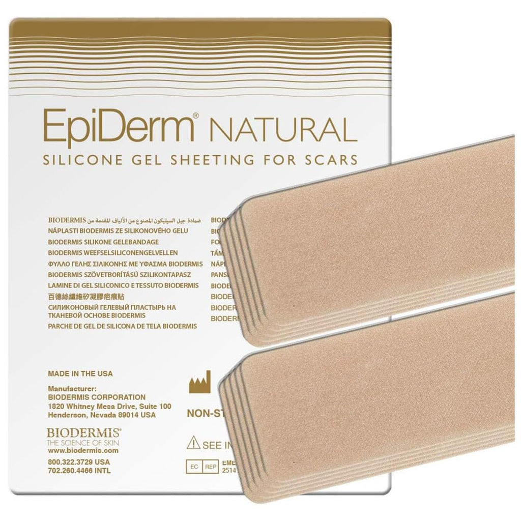• Q: How long do EpiDerm silicone scar sheets last? A: With proper care, each EpiDerm silicone sheet can last for 2 to 3 weeks and can be reused multiple times.