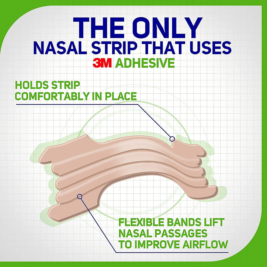 Breathe Right Nasal Strips Extra Clear for Sensitive Skin, 26 Count - Breathe Right Extra Clear nasal strips are breathing aids for your nightly routine. They lift and open your nasal passages to help you breathe better so you can sleep better. Use them to reduce nasal congestion due to colds, allergies, or a deviated septum and help reduce or even stop snoring due to nasal congestion altogether. Breathe Right nasal strips are the only nasal strips that use 3M technology for comfortable fit and removal. Made with flexible, spring-like bands, they open your nose up to 38% more vs. decongestant sprays alone. And because Breathe Right Extra Clear nasal strips feature an extra band, youll get 50% stronger relief. Breathe Right nasal strips come in a variety of strengths, sizes, and types, including original (in sizes small/medium or large), extra strength, tan, clear, and lavender-scented strips. Plus, every strip is drug-free and safe to use with other medications. Try Breathe Right today! Instructions: Please read the enclosed instruction sheet before use for: Complete caution statements. Proper application and removal. Caution: The packaging of this product contains natural rubber latex which may cause allergic reactions. Breathe Right is not intended to treat Sleep Apnea.