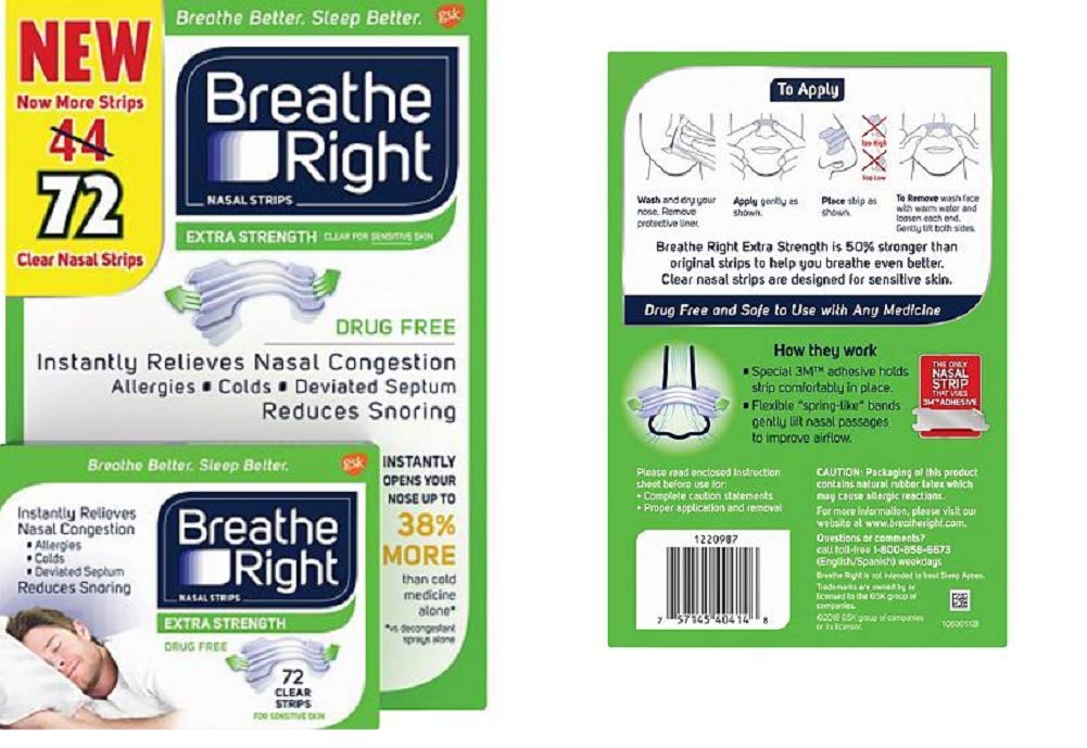 • Q: How many strips are included in a package? A: Each package of Breathe Right Extra Clear nasal strips contains 72 strips, providing ample supply for multiple nights of use.