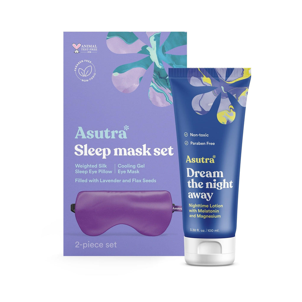 ASUTRA Dream Sleep Bundle - Purple Silk Eye Pillow Box Set and Dream The Night Away Lotion with Magnesium and Melatonin