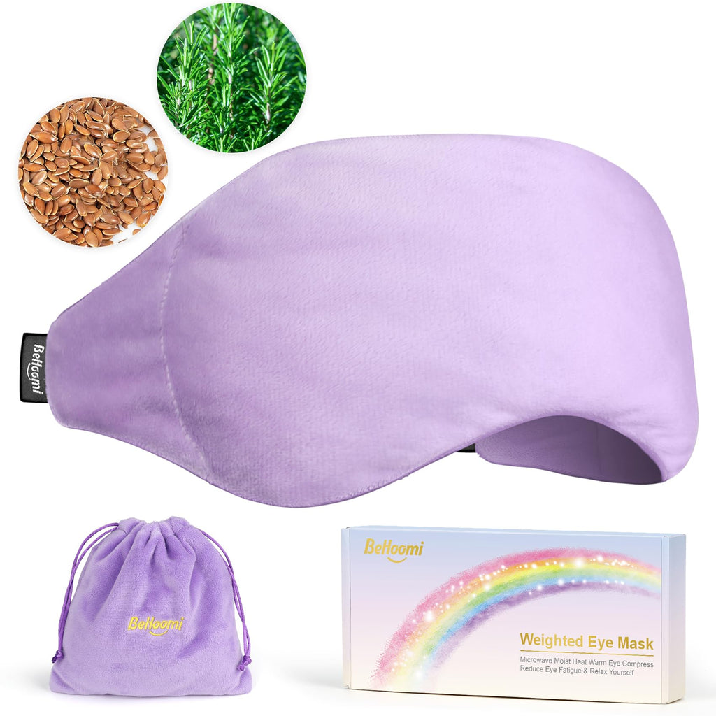 BeHoomi Weighted Eye Mask for Sleeping, Soft Heated Eye Mask, Moist Heat Warm Compress for Eyes, Natural Rosemary & Flaxseeds Microwave Reusable Sleep Mask, Must Haves for Women Spa, Home, Office