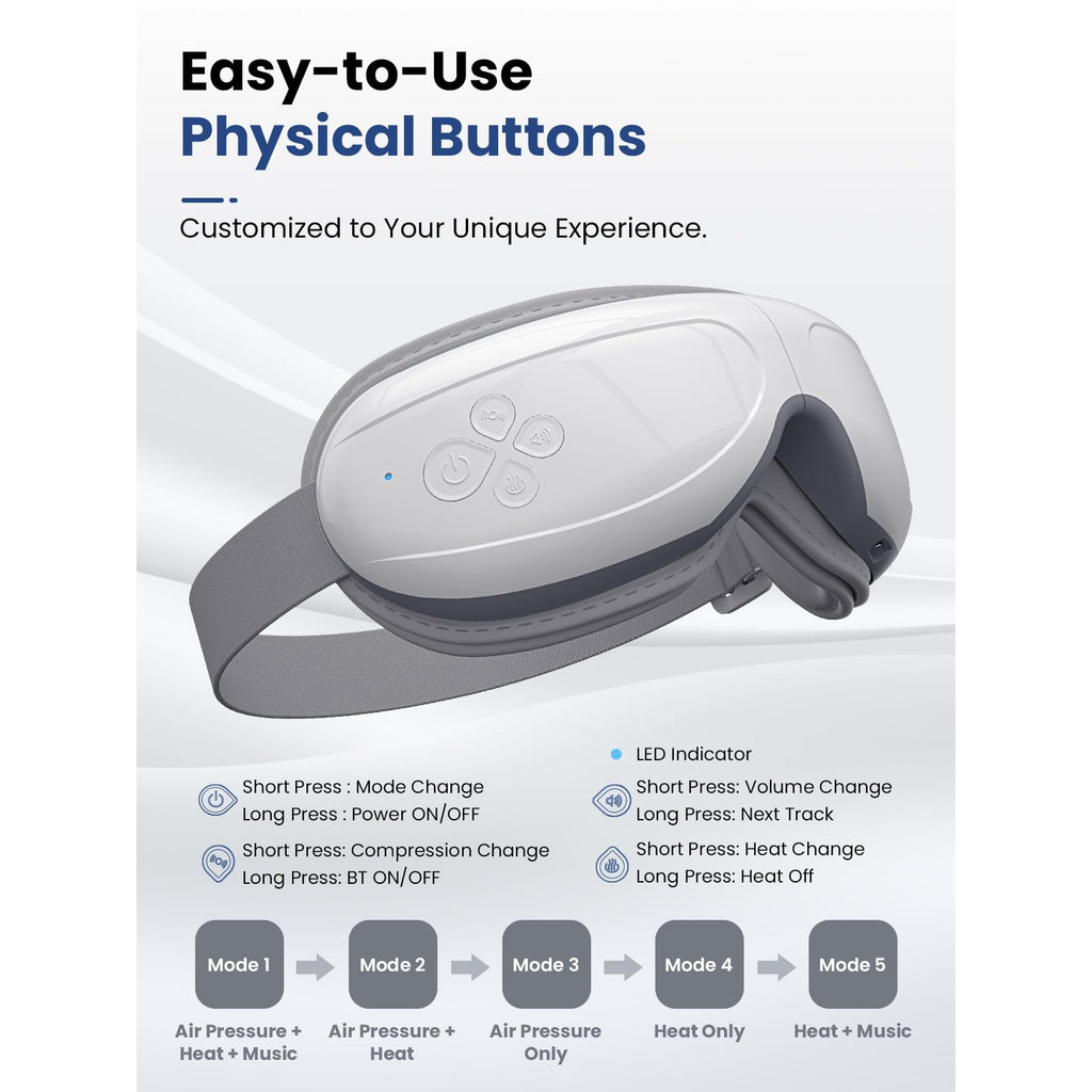 Why Choose BOB AND BRAD Eye Massager with Heat? BOB AND BRAD gives a much-needed relief of eye strain & tension headaches and promotes sleep after a long time reading, learning or working. 5 different massage modes to meet your different needs, relax your eye strain. Easy to carry, 180foldable design allows for easy portability so you can take it with you wherever you go! With the built-in white noise, our eye massager can help you immerse in a more relaxing environment, educes anxiety and the physical effects of stress, help you drift off to sleep faster. 1200 mAh rechargeable battery, 3 hours charging, can support 6-8 times of usage, in a total of 90 minutes. Upgrade Your Eye Care Routine With BOB AND Brad Eye Massager, Enjoy Your Relief Journey Reduce Dark Circles: The massage nodes increase protein secretion to improve cell metabolism, smooth out wrinkles and eliminate dark circles. Relieve Dry Eye: With precise heat and pressure technology, improves blood flow in the ocular region, promoting lubrication and relieving soreness. Improve Sleep Quality: Our massage device has been proven to improve sleep quality and emotional wellness. Relief Headache: An eye massage targets muscles in the ocular area to help loosen tension and provide relief from sinus headaches.