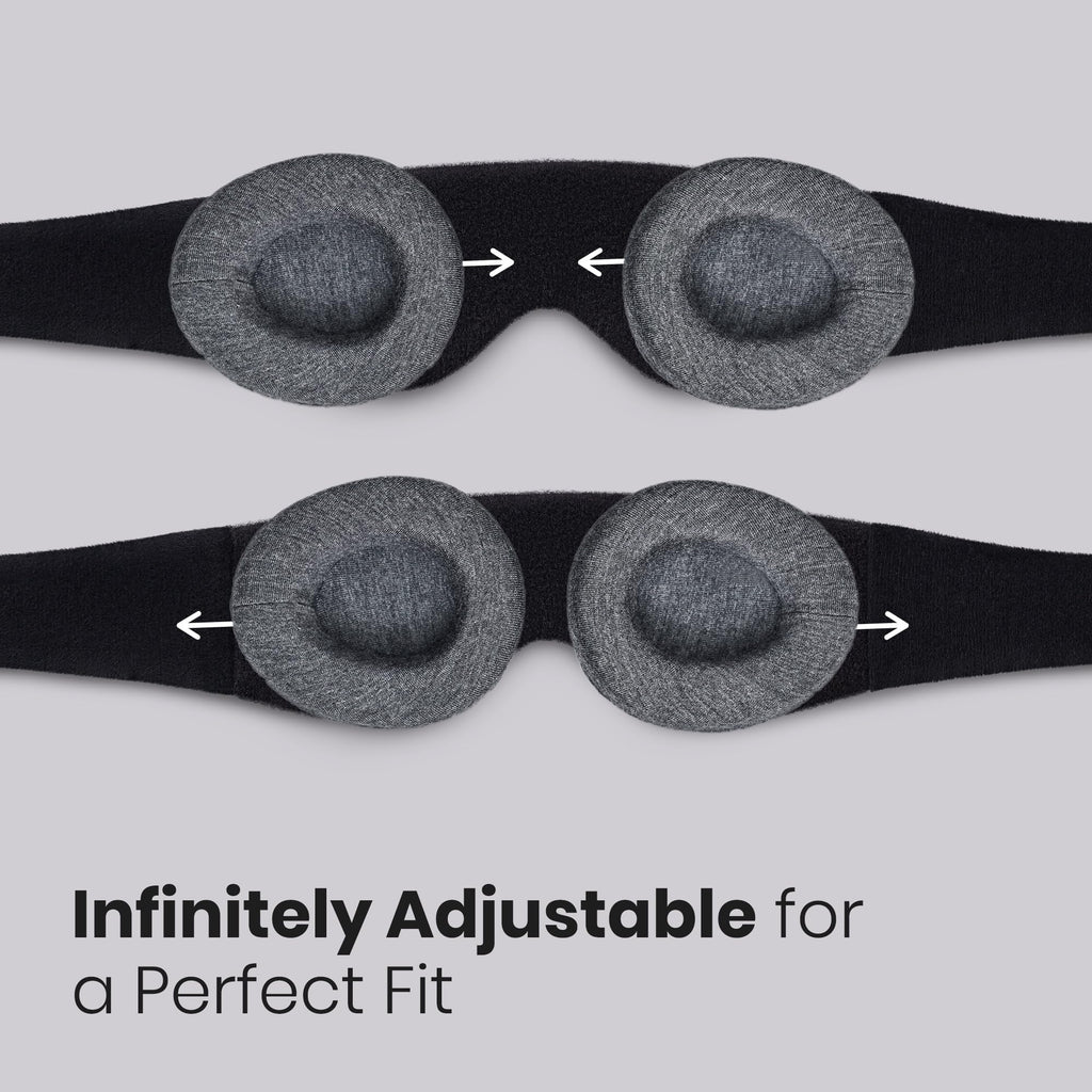**Manta Sleep Mask - The world's comfiest 100% blackout sleep mask with eye cups.Sleep is too important to leave to chance. So don't.Meet the sleep mask that single-handedly made all other masks obsolete.The only mask designed, constructed and optimized for deepest-possible sleep in any environment.Because better sleep means better everything.*100% Blackout for Deeper Sleep - Just a pinprick of light can disrupt REM and deep sleep, leading to post-sleep tiredness. That's why Manta perfectly covers and conforms to your eyes to block 100% of light, even in broad daylight - so you always get deep, uninterrupted sleep.*Infinitely Adjustable for Personalized Fit - Manta is made to fit your unique face. Your eye covers' position, angle and strap tightness are infinitely adjustable for a fit so seamless, you barely feel your mask on your face. It's like it was custom made for you. (Because it basically was.)*Soft, Breathable, Durable Materials - Manta is designed for no-compromises comfort and constructed with super soft, breathable, durable materials that gently conform to your face without putting any pressure on your eyes. So you snooze soundly whether you're on your back, side or stomach.*Zero Pressure on Eyelids or Lashes - Deeply molded eye covers for complete comfort in every position.