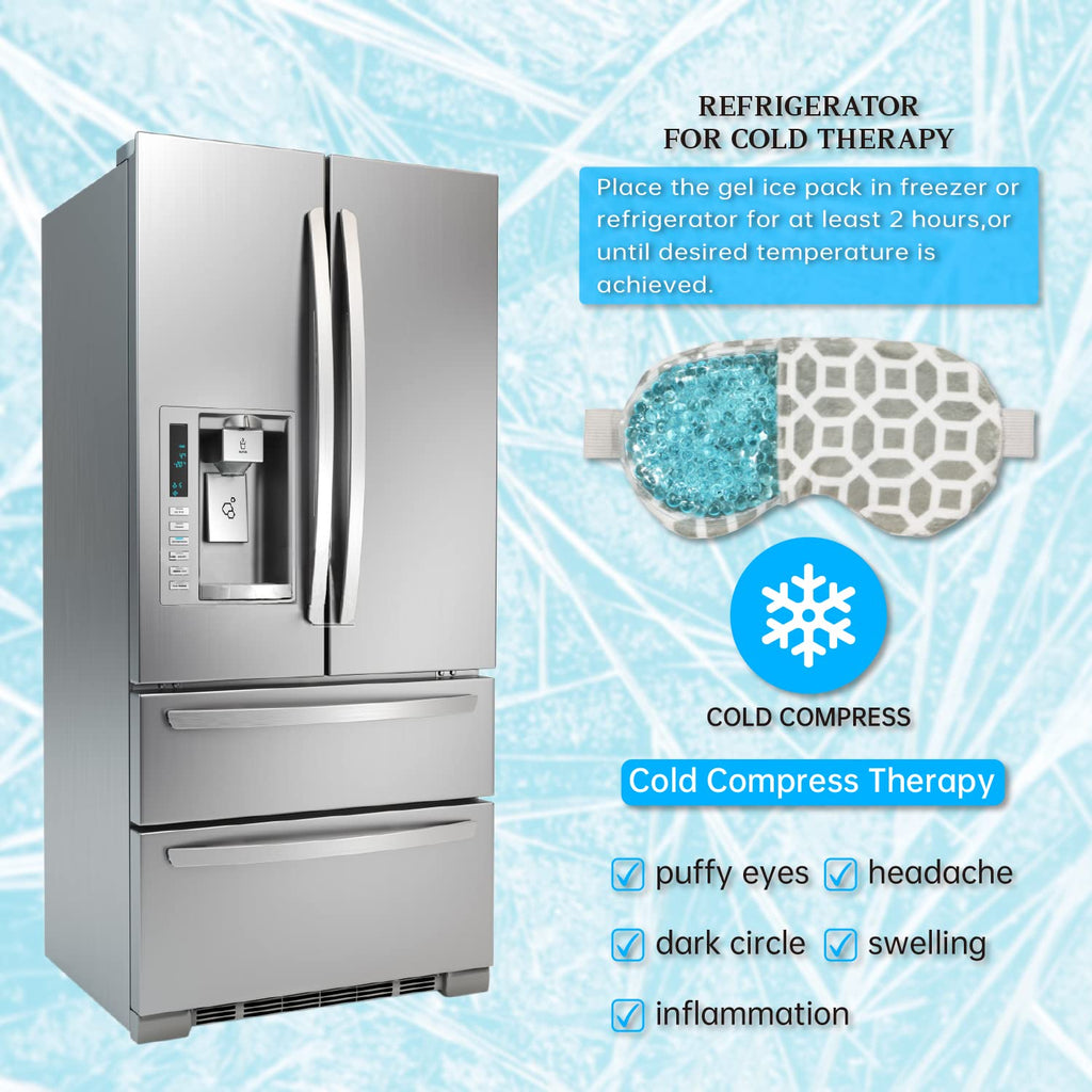 • Q: How does the ice pack work with the eye mask? A: The included ice pack contains ice beads that absorb and retain coldness, providing a refreshing cold compress to relax and soothe tired eyes.