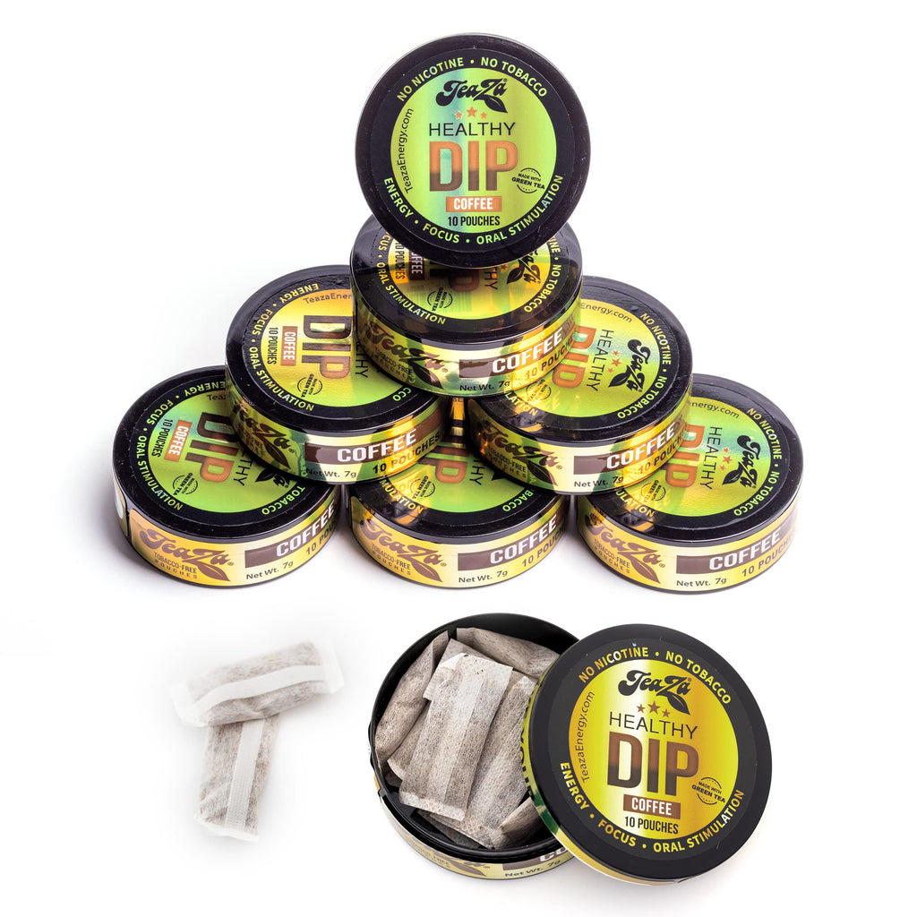 • Q: Are TeaZA pouches nicotine and tobacco-free? A: Yes, TeaZA Herbal Dip Coffee Pouches are both nicotine-free and tobacco-free, making them a safe alternative to traditional smokeless tobacco products.