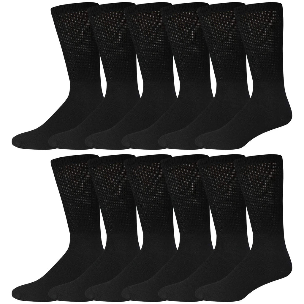 Mens Diabetic Neuropathy Crew Socks. These diabetic socks are made from cotton and promote better circulation! Tops easily stretch over ankles and bounce back into shape. Loose fitting tops stretch over ankle for ease of dressing. Tops bounce back for a comfort fit without binding the leg. Allows for better blood circulation, so important for diabetics and people with circulatory problems or neuropathy.Promotes better circulation. Sock size 10-13 fits Mens shoe size 8-12. Knitted for comfort with Smoother Toe Seam for: Diabetes, Neuropathy Edema.