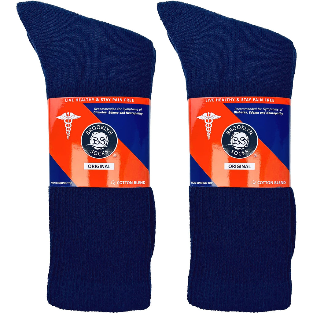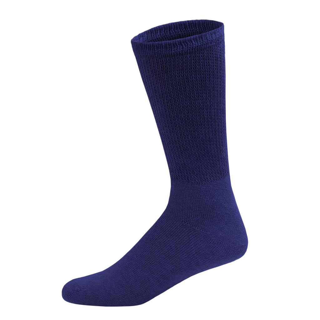 Mens Diabetic Neuropathy Crew Socks. These diabetic socks are made from cotton and promote better circulation! Tops easily stretch over ankles and bounce back into shape. Loose fitting tops stretch over ankle for ease of dressing. Tops bounce back for a comfort fit without binding the leg. Allows for better blood circulation, so important for diabetics and people with circulatory problems or neuropathy.Promotes better circulation. Sock size 10-13 fits Mens shoe size 8-12. Knitted for comfort with Smoother Toe Seam for: Diabetes, Neuropathy Edema.
