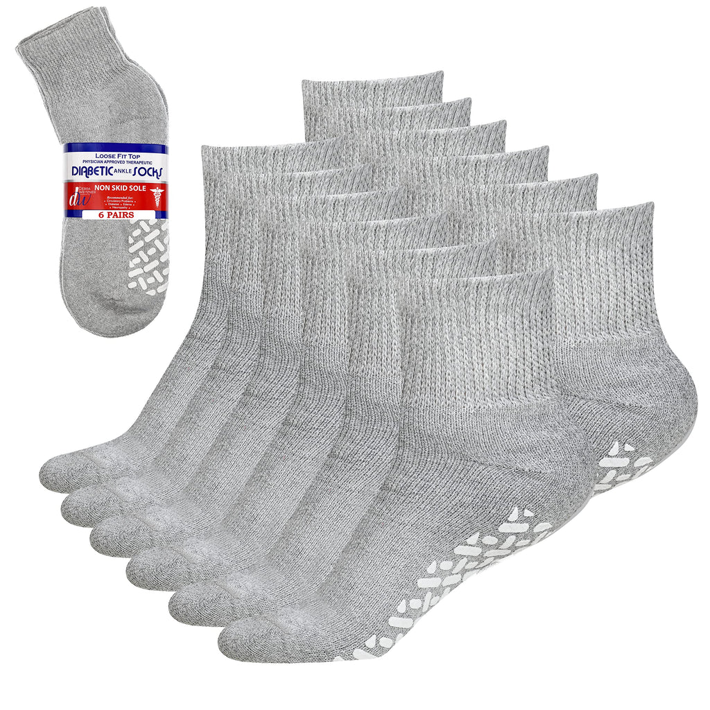 CHIC AND COMFORTABLE: The Debra Weitzner diabetic socks for men and women are soft and warm. They are easy to pull on and are not tight around the ankles. You can wear these non-slip socks when you work at the office and when you go to bed at night. | NON-SLIP GRIPS: These slipper socks have a skid-resistant layer on the sole for a better grip. Stay safe at your hospital or rehab and be comfortable padding around your home too. | WIDE WIDTH LOOSE FIT: These hospital socks are physician approved and recommended for people with diabetes, edema, and neuropathy caused by circulatory problems. The loose non-binding top boosts blood circulation for more comfort. | MATERIAL SIZE AND CARE: Constructed of 90% high quality cotton, our medical socks for men are breathable and soft. Available in three standard sizes so you can choose the best fit. Machine wash cold and tumble dry low for best results. | SATISFACTION GUARANTEE: Your satisfaction is our commitment. If our socks do not meet your expectations contact us directly and we will help you get what you need.