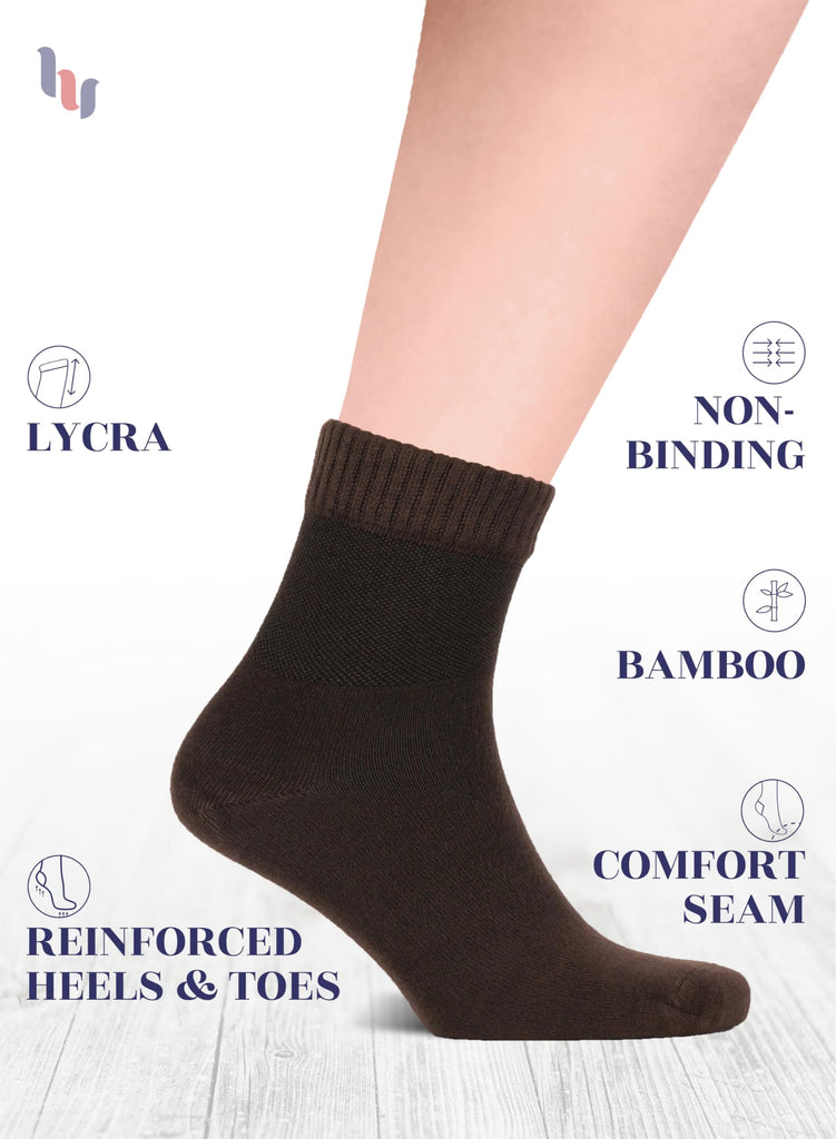WHY HUGH UGOLI?The ambition of Hugh Ugoli is not only to bring the best quality socks to our customers but also to make them happy every step of their way, to see them happy with each foot of the steps. In order to achieve these goals, we make all our effort to get Turkish textile quality and aesthetics to our valued customers' feet by bringing together design experts and the latest technology knitting machines.BENEFITS OF BAMBOO SOCKS:1. Through its good air permeability, bamboo regulates foot temperature, keeping your feet cool in summer and warm in winter.2. Prevents moisture, keeps feet dry and comfortable thanks to its super absorbent fibers.3. Ideal for sensitive skin, caress the feet and prevent irritation.4. Much softer than cotton or wool socks, feels more like high-quality silk or cashmere.5. Flexible, comfortable (recommended for diabetics), and has an odor-free feature.DIABETIC SOCKS FOR HEALTHY BLOOD CIRCULATION:These excellent men's diabetic ankle socks offer a combination of quality, comfort and style. They are highly recommended for elderly people and people with diabetes, edema, swollen ankle, and neuropathy caused by circulatory problems. Its loose-fit top will allow blood to flow unimpeded, boosting blood circulation.QUALITY MATERIALS:Hugh Ugoli bamboo socks have been designed for the USA and manufactured in Turkey which is one of the top 5 textile manufacturers in the world. They are made of 80% Bamboo, 17% Polyamide 3% Elastane (Polyester Free). Suitable for men US shoe size 8 to 13, lightweight and versatile enough for any occasion.FIRST-CLASS SERVICE by HUGH UGOLI:Hugh Ugoli put the quality on your feet. if any inconvenience, please contact us as soon as possible, NO QUESTION, we'll do our best and make you happy. Your happiness really matters to us and your satisfaction is our encouragement to chase high-quality products.