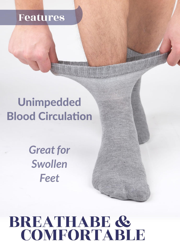 • Q: Are these socks suitable for diabetics? A: Yes, these socks are specifically designed for diabetics and individuals with circulatory issues. They feature a loose-fit top that promotes healthy blood circulation.
