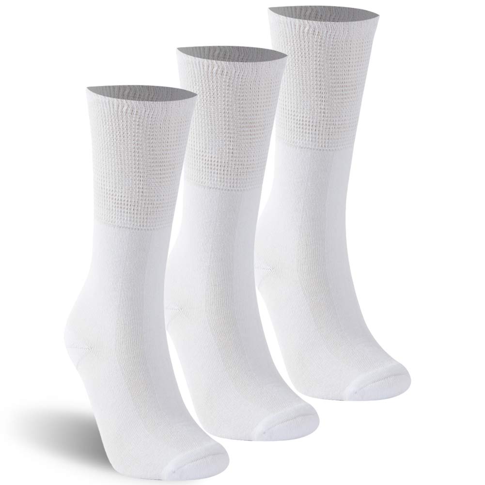 KitNSox Unisex Diabetic Crew Socks Moisture Wicking Casual No Binding Crew Socks for Men Women with Size M, L, XL.MATERIAL&SIZE: 80% cotton, 18% nylon, 2%elastan; 3 size, M: Mens shoe size 8-10;Womens shoe size 9-11, L: Mens shoe size 9-12;Womens shoe size 10-13, XL: Mens shoe size13-16; Womens shoe size 13+.SENSITIVE FEET SOCKS: These diabetes socks helps with Circulation, Diabetic Feet, Diabetic Neuropathy, Sensitive Feet, Swollen Ankles, Swollen Feet and Legs, Wide Calves. KitNSox diabetic socks offer a combination of quality, comfort, and style.BREATHABLE&EASES BLOOD CIRCULATION: These loose top socks stays up without being tight, reinforced heel offers durability in high stress areas, and helps relieve pressure on the feet and legs, provide maximum comfort.CUSHION Padding: These non-binding socks Padded fabric inside, soft touch, offer proper cushioning without squeezing or constricting your legs in any way, provide much more safety and softness for diabetes' feet.SEAMLESS&SUPERSOFT: These diabetic crew socks feature with soft seam technology which creates an ultra-smooth toe seam to help reduce rubbing and for better protection of your feet.COMFORT&MOISTURE WICKING: Suitable thickness, not thin in winter, not hot for summer, wear four seasons. Plush terry on the sole softly pads your steps. Moisture-wicking acrylic fibers keep feet dry.KitNSox Diabetic Socks Provide Maximum Comfort for You!!!