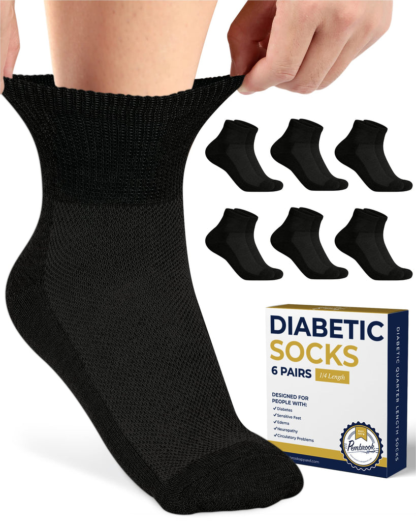 • Q: How do the Pembrook diabetic socks perform in terms of odor resistance? A: The advanced yarn blend used in the Pembrook diabetic socks is designed to resist odors, helping to keep your feet smelling fresh.