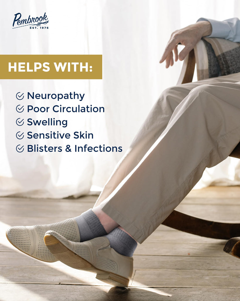 Pembrook Gray Ankle Diabetic Socks for Men & Women - 6 Pairs | Low Cut Stretch Top Mens Diabetic Socks | Ankle Moisture Wicking Neuropathy Socks for Men | Diabetic Socks for Men 9-12