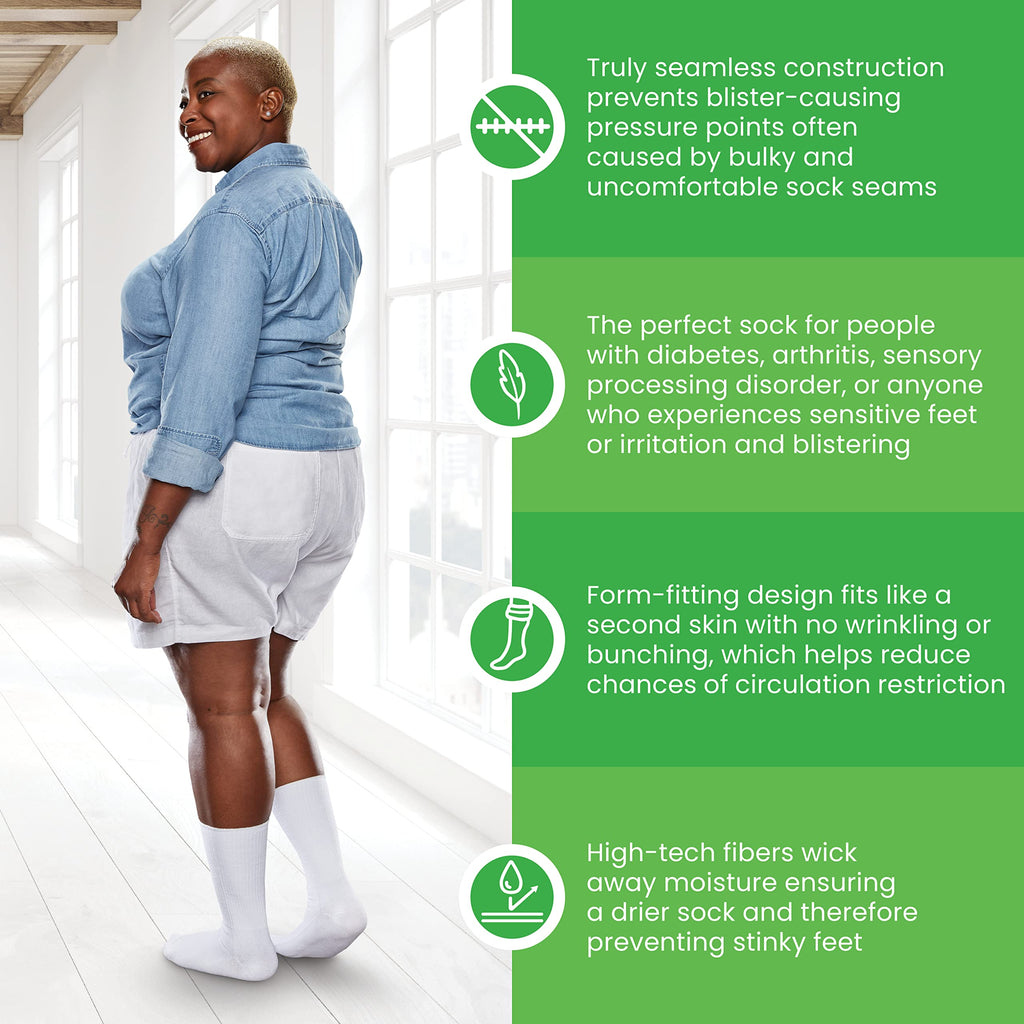 TRULY SEAMLESS - prevents blister-causing pressure points often caused by bulky and uncomfortable sock seams | FORM FITTING - fits like a second skin, with no wrinkling or bunching and help in reducing the chances of circulation restriction | NON BINDING - Elastic-free top helps prevent painful leg indentations | DRY SOCKS - High-tech CoolMax or X-STATIC fibers remove perspiration for a dryer & more hygienic sock environment | 100% MADE IN THE USA - Created, designed, and manufactured in the USA.