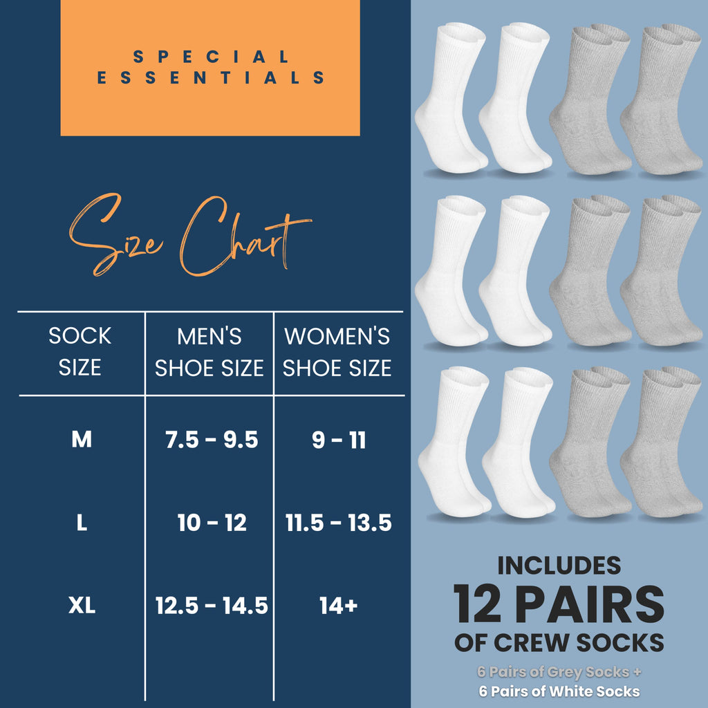 Introducing Special Essentials' 12 Pairs Cotton Diabetic Crew Socks for Men & Women - a perfect blend of style and comfort for those seeking diabetic socks for men or diabetic socks for women. These diabetic compression socks men and women are designed to alleviate discomfort associated with diabetes and neuropathy. Our diabetic socks are designed with non-binding extra wide tops, making them perfect for those in search of diabetic socks for men size 13-15 extra wide or diabetic socks women 9-12. Our socks are not only ideal for diabetics but also for those seeking enhanced circulation. These circulation socks for men and women offer a comfortable and non-restrictive fit, doubling as neuropathy socks that provide neuropathy pain relief. These socks for neuropathy men and women are also perfect for those looking for mens diabetic socks size 10-13 or diabetic socks for women size 9-11. They are also suitable for those who need diabetic socks for men 9-12 or diabetic socks for women size 6-9. The Special Essentials diabetic crew socks are not just medical aids but fashionable accessories too. Available in various sizes, including men's diabetic socks size 10-13, diabetic socks for men size 13-15, and diabetic socks for women size 9-11, they are suitable for all. They also cater to specific needs like extra wide socks, or non-binding socks women and men will find comfortable. With a customer-centric approach, Special Essentials caters to the needs of all its customers, including those who need calcetines para diab ticos hombre, medias para diab ticos hombre, or socks for diabetics men and women. Our socks for diabetics women and men are designed with the highest quality materials, ensuring durability and comfort. Whether you need diabetic socks men, women's diabetic socks, diabetes socks for men 9-12, men's diabetic socks, or diabetic socks for men size 13-15 extra wide, Special Essentials has got you covered. Experience the comfort of our diabetic socks, including diabetic ankle socks for men 9-12, diabetic mens socks, and diabetic dress socks for men. Our collection also includes socks for diabetics, diabetic compression socks, diabetic socks for women size 6-9, and diabetic socks for men size 13-15.