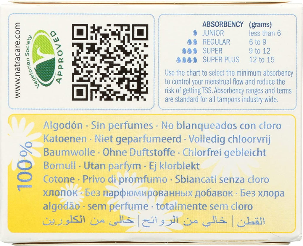 Natracare Regular Organic Cotton Tampons (applicator-free): Period Care, Naturally Elevated - Made with 100% certified organic cotton, these tampons are crafted for the most sensitive skin, free from the worries of harmful synthetics, chlorine bleach, and harsh dyes. DI Number: 00782126181039. GOTS Organic license number: X303 - Certified by The Soil Association.