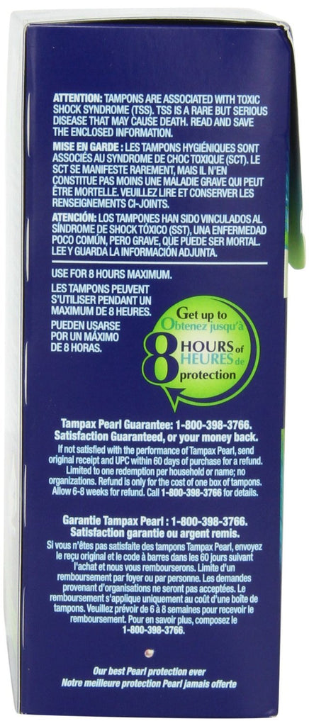 • Q: How long can I wear a Tampax Pearl Super tampon? A: You can wear a Tampax Pearl Super tampon for up to 8 hours for effective protection.