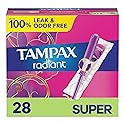 Tampax Radiant super plastic tampons give you the confidence and freedom of up to 100% leak & odor-free protection. Our quietest tampon wrappers are fierce, fun-patterned, and re-sealable! Tampax Radiant tampons have a CleanGrip applicator designed for incredible comfort and a LeakGuard Braid that helps stop leaks before they happen. So don't let a little thing like your period stop you from living life to the fullest.