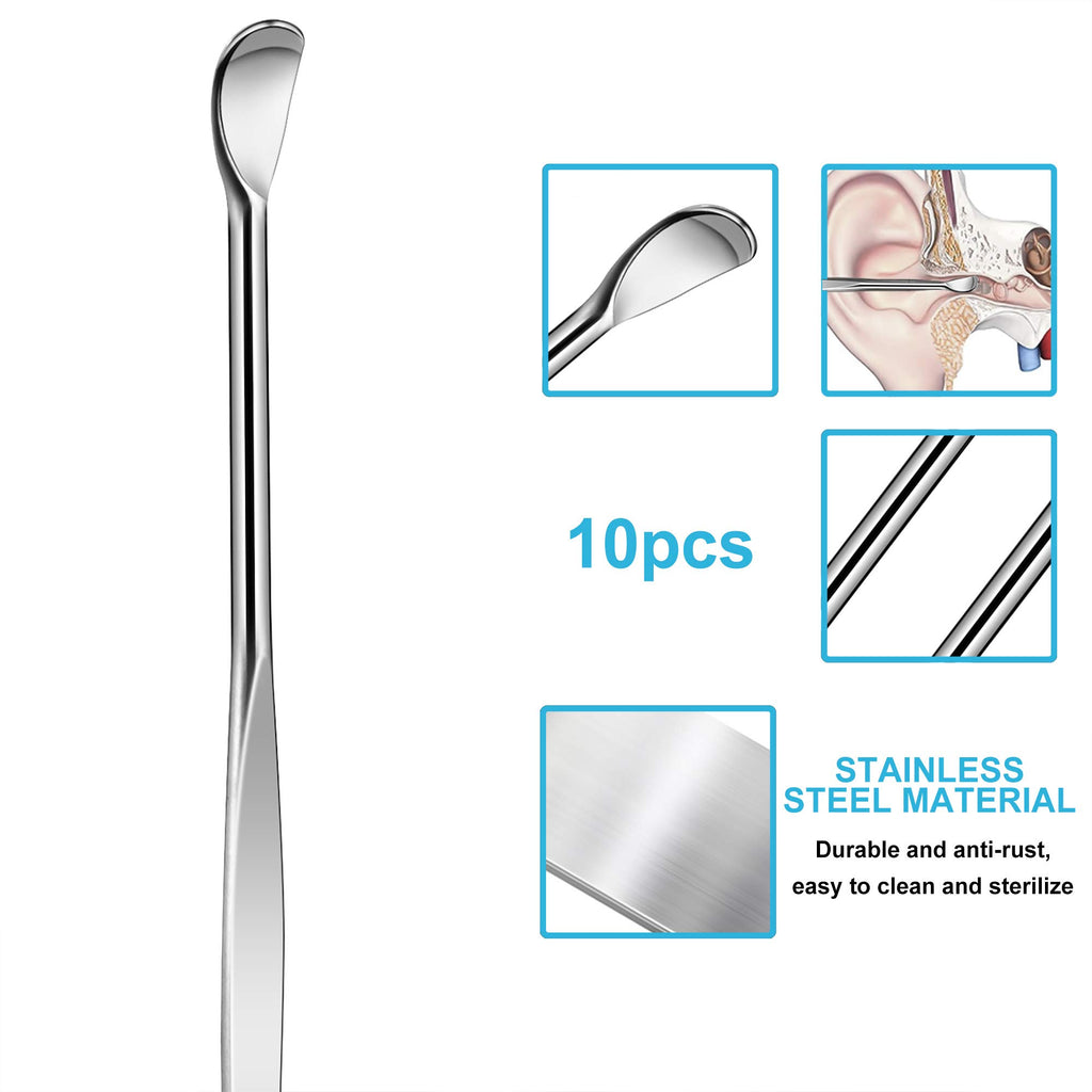 MATERIAL- Made from medical grade stainless steel, durable and sturdy, easy to clean-- Hjturkey Direct | EASY TO USE AND CLEAN: Rinse them off thoroughly with soap and water before and after using.-- Hjturkey Direct | SAFE AND ANTI-SLIP DESIGN: Fully polished tools with smooth and rounded surface, all to prevent any irritation or scratching -- Hjturkey Direct | ERGONOMIC DESIGN: Different from the cotton swabs which may further push the wax into the ear, the scoop shaped ear wax remover tools can effectively remove buildup earwax.-- Hjturkey Direct