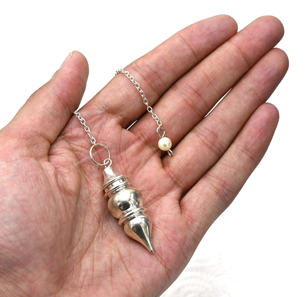 ? Metaphysical Metal Dowsing Pendulums for Divination, Meditation and Reiki Healing ? ? You are purchasing one Metal Dowsing Pendulum Necklace for Meditation and Divination which will come with a Gift Pouch and Certificate of Authenticity. All these beautiful metal pendulums have been personally chosen and selected under superior quality check and we always prioritize the quality and so as we use 100% genuine material in our all the products. ? The product comes with a chain having metal bead at the end or black cord as per its specification and shown in the product pictures. ?These metal pendulum are made of Brass Material which has different metal coatings on it as indicated on the product detail page. You can choose the coating accordingly :) ? Pendulums are a very versatile tool for personal growth and consciousness expansion. They're easy to learn, can travel with you anywhere, and can be used for self-hypnosis, peace of mind, energy healing, protection from evil eye and negative energy, meditation and divination. ? The pendulum is a tool that is used to communicate with spirit via your higher self or your guides. This is one way that you can confidently make decisions based on a precise method. This tool can be used to aid you to make decisions about healing, and is a fast and easy way to get answers to problems.