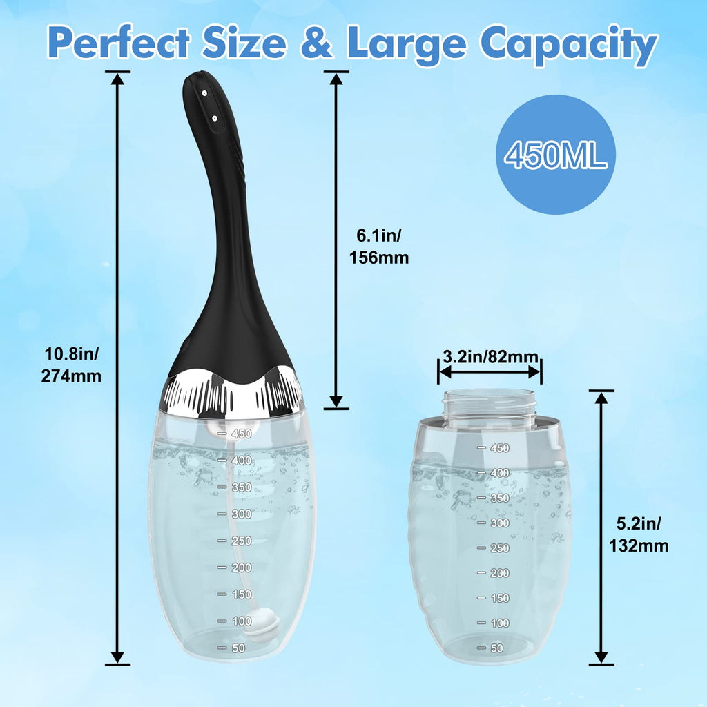Ergonomic Design for a Comfortable Cleaning Experience The head diameter of the enema is only 0.8 in, the maximum insertion depth of the nozzle is 105mm, and there is a 10 tilt angle, so this nozzle is suitable for human body curve and easier to insert. Note: The remote control is not waterproof, please pay attention when using it.