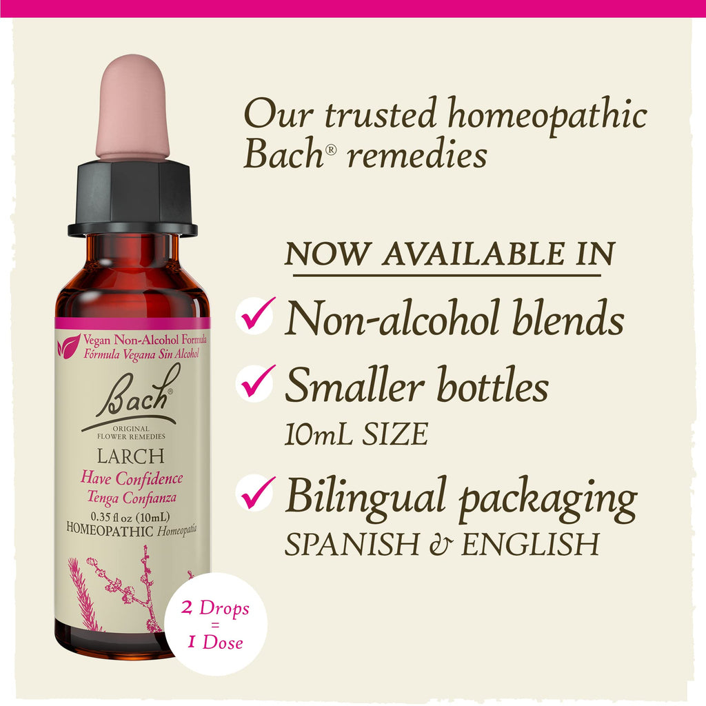 • Q: What is Bach Original Flower Remedies Larch used for? A: Bach Original Flower Remedies Larch is used to encourage confidence and self-esteem, helping individuals approach new situations with determination.