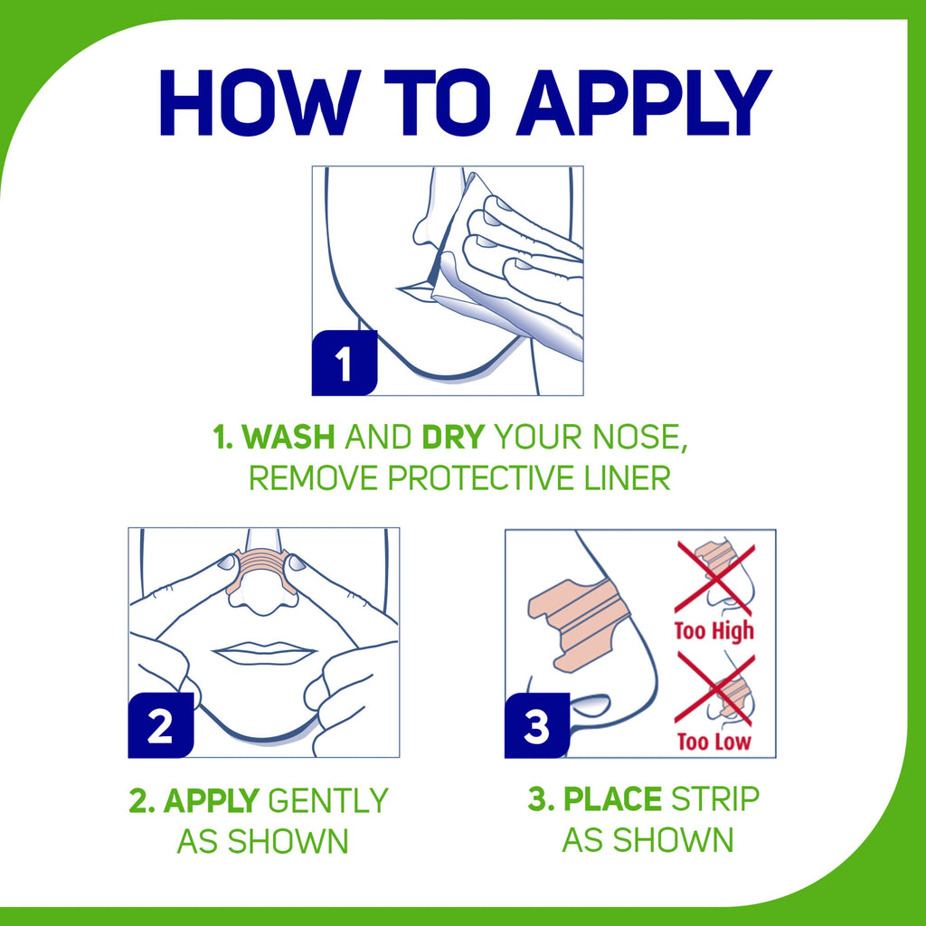 They seem simple, but Breathe Right nasal strips have unique engineering that make them a sleeping aid as well as an effective tool for managing nighttime congestion and improving sleep. The nasal strips are made of flexible, spring-like bands that fit right above the flare of the nostrils. The underside is 3M adhesive so that once positioned on the nose, they stay there. As the bands attempt to straighten back to their original shape, they lift the sides of the nose and open the nasal passages. This lifting action helps open inflamed sinus passages and makes it easier to breathe. The nasal strips provide instant relief for congestion due to colds, allergies, or a deviated septum and reduce snoring caused by nighttime nasal congestion. How to use Breathe Right Nose Strips? Clean Your Face: Since adhesive doesnt stick well to oily, wet or moisturized skin, its important to wash and thoroughly dry your nose before applying a nasal strip. Position Nasal Strip: Remove the protective liner to expose the adhesive, then position the nasal strip on your nose. Position is critical - the strip should be centered along the width of your nose with the tabs on the flaring part of the nostril. The tabs shouldnt cover the flaring part of the nostril entirely, but rather should sit just above. Apply to Nose: Gently rub the strip to secure it onto your nose. Nasal strips come in different sizes to fit different nose types, so you should determine which size is best for you. Also, its important to always refer to the packaging leaflet before use. Satisfaction Guarantee If for any reason you are not satisfied with any GSK Consumer Healthcare product, GSK Consumer Healthcare will provide you with a reimbursement within 45 days of the date of purchase. Please note that because GSK is unable to control the quality of our products sold by unauthorized sellers, the Guarantee is not available for products purchased from unauthorized sellers due to potential quality issues outside GSKs control. Please contact GSK Consumer Healthcare directly for more information.
