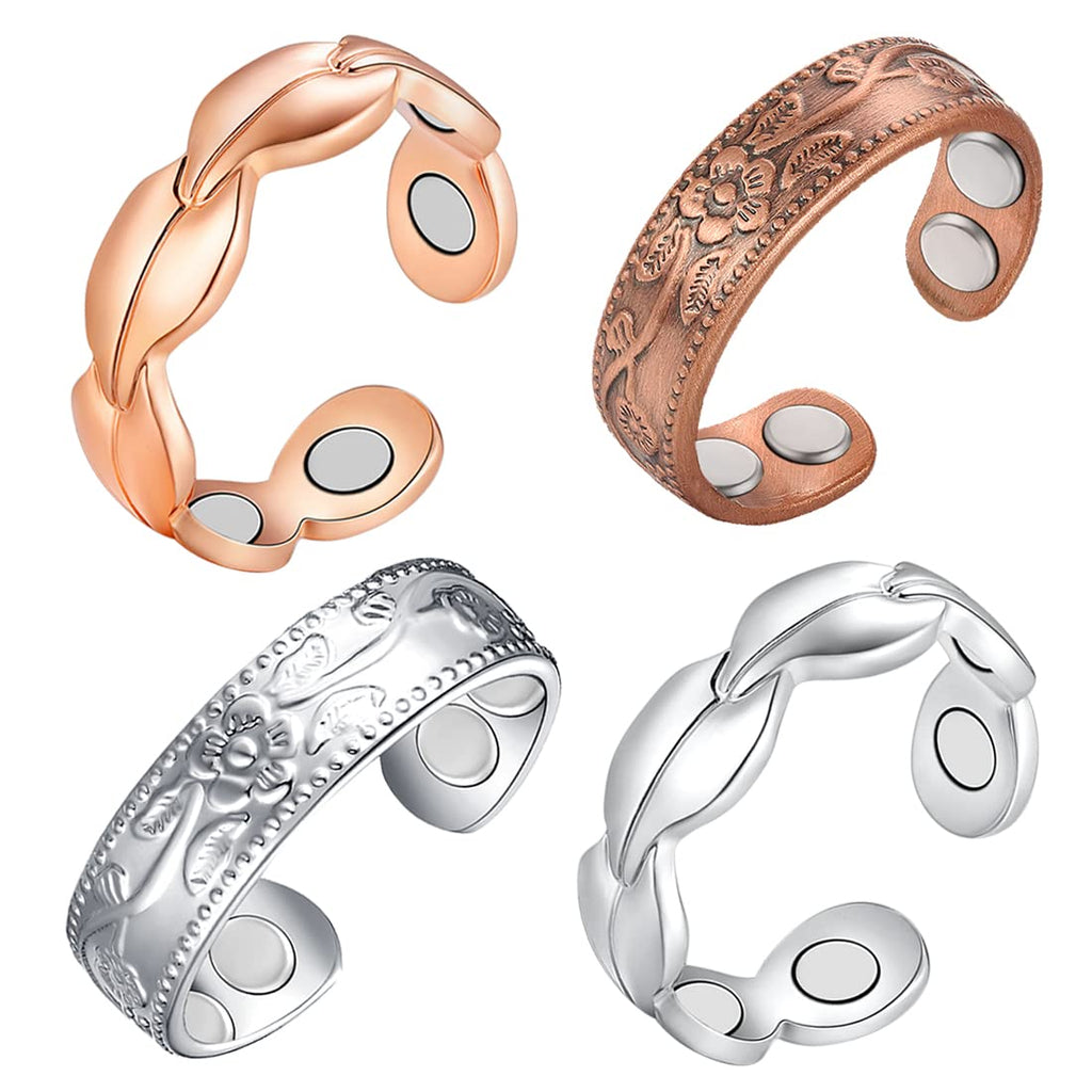 Cigmag 4PCS Copper Rings for Women, 99.99% Pure Copper Magnetic Ring Strong Magnets, Adjustable Thumb Fingers Ring with Jewelry Gift Box for Valentine's Day