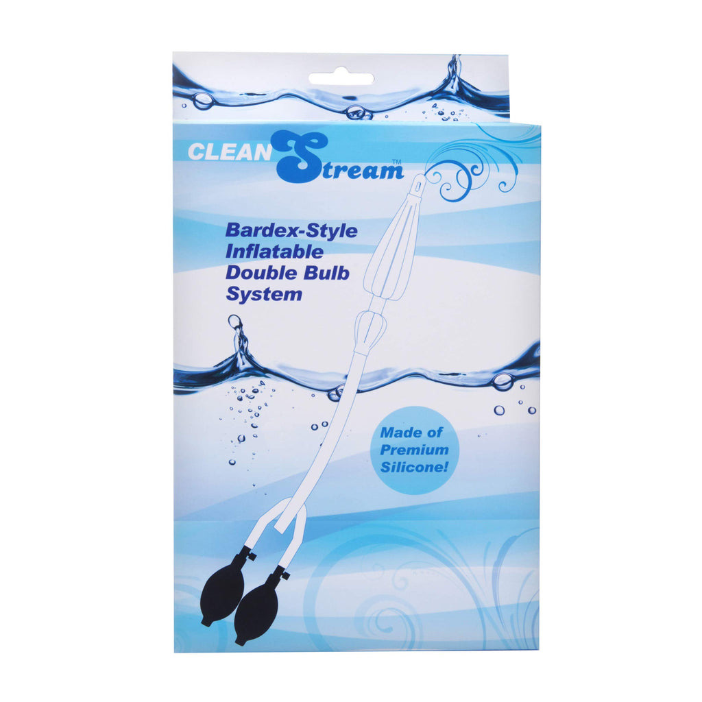 The inflatable double bulb system is made of premium PVC. The nozzle is inserted along with the first balloon. Both balloons are then inflated, creating an internal feeling of fullness and an external seal. Once the Seal is created, liquid is filled inside via a bag system or the Cleanstream in line accelerator.The premium material is ultra soft yet firm and flexible, for comfortable and body safe use. Each bulb has an integrated release valve for quick deflation and easy removal.Measurements: 17.5 inches in total length; large bulb: 5 inches in length, 3 inches Max diameter inflated; small bulb: 1.75 inches in length, 2 inches Max diameter inflated.Material: PVC and Polypropylene.Color: Clear.Note: Compatible with the water bottle cleansing kit, water bottle douche kit, and In-Line accelerator bulb.