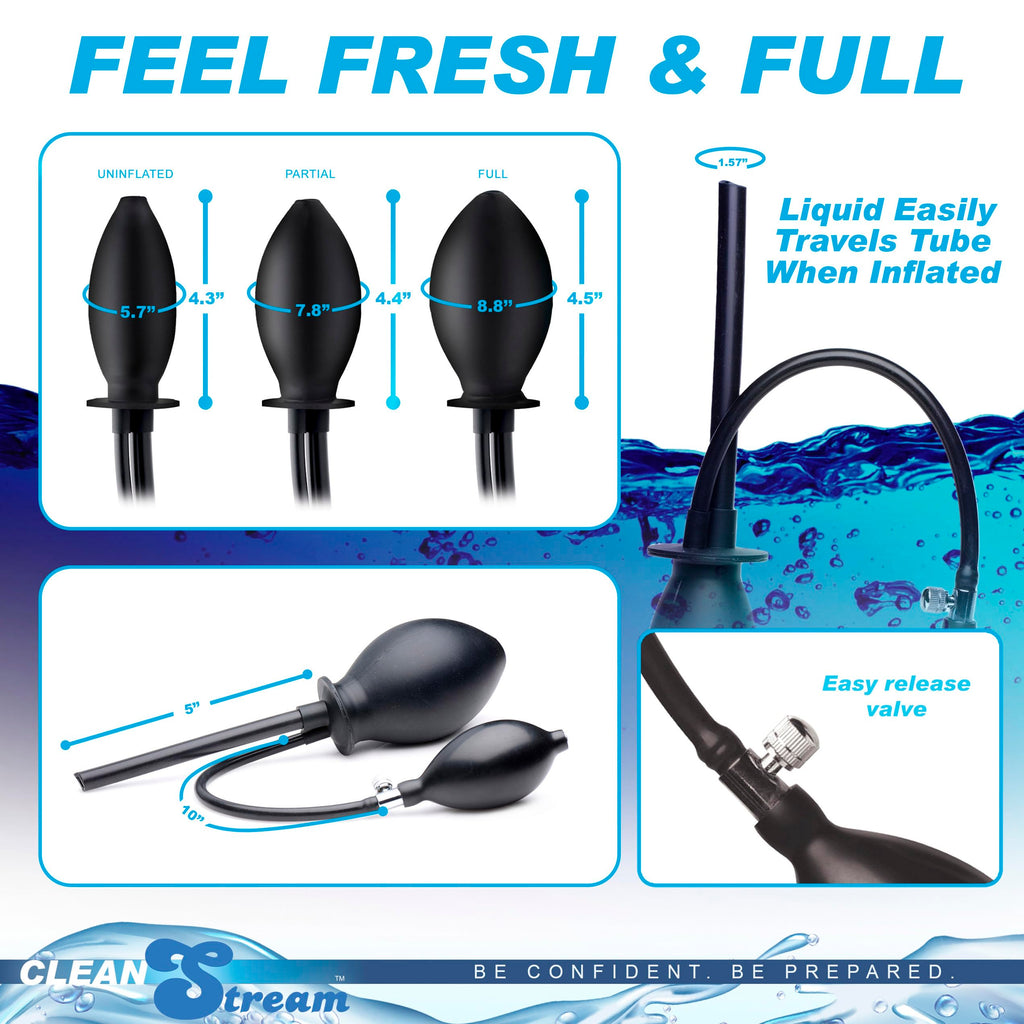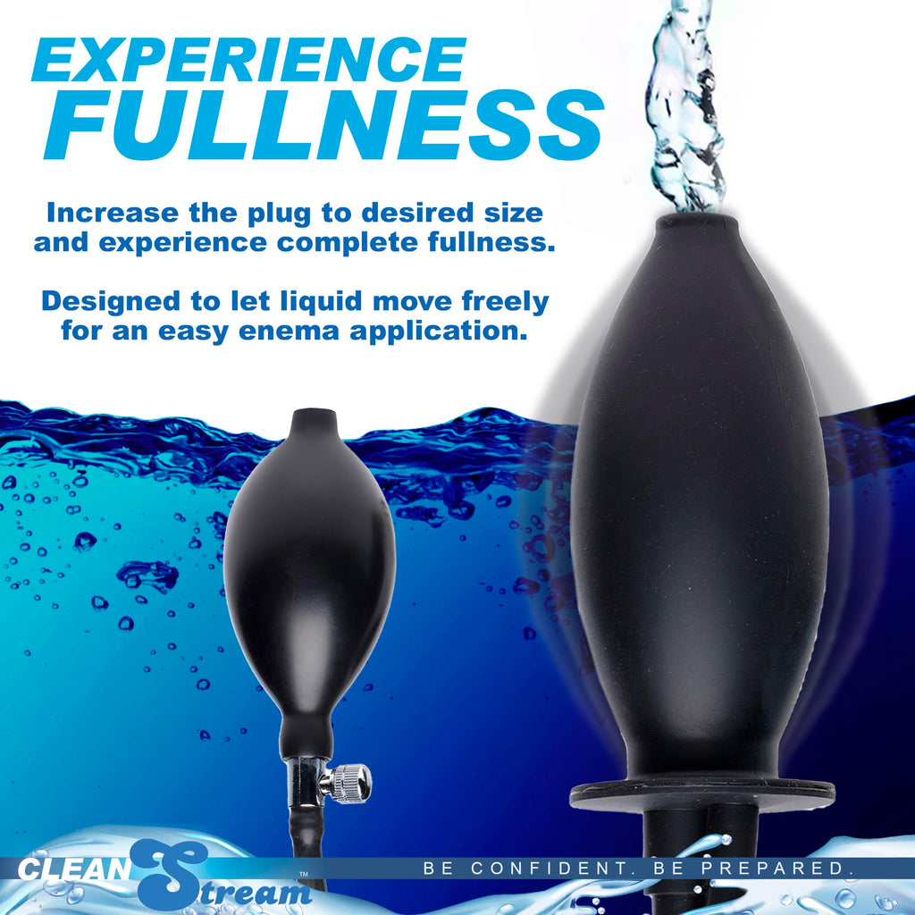A rubber tube running through this inventive device allows fluid to pass through while it is inflated. When the plug is in use and inflated the large rubber hose can be connected. The inflatable plug prevents itself from falling out until the desired time arrives.
