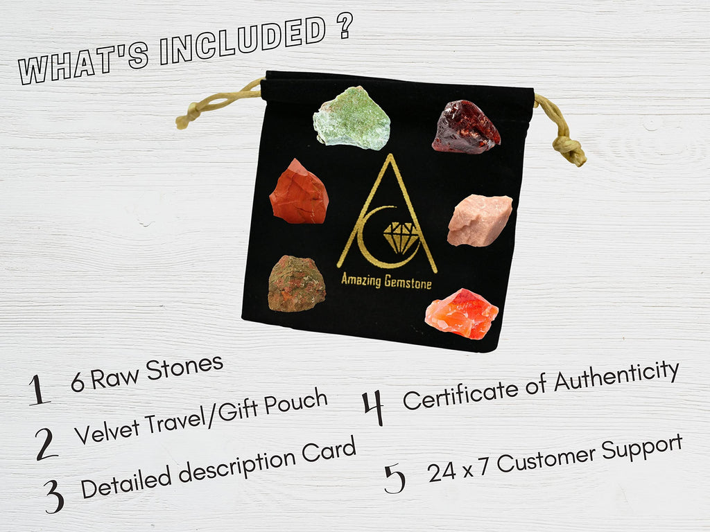 • Q: What crystals are included in this fertility manifestation set? A: The set includes six high-quality crystals: Carnelian, Unakite, Peach Moonstone, Garnet, Red Jasper, and Vesuvianite.