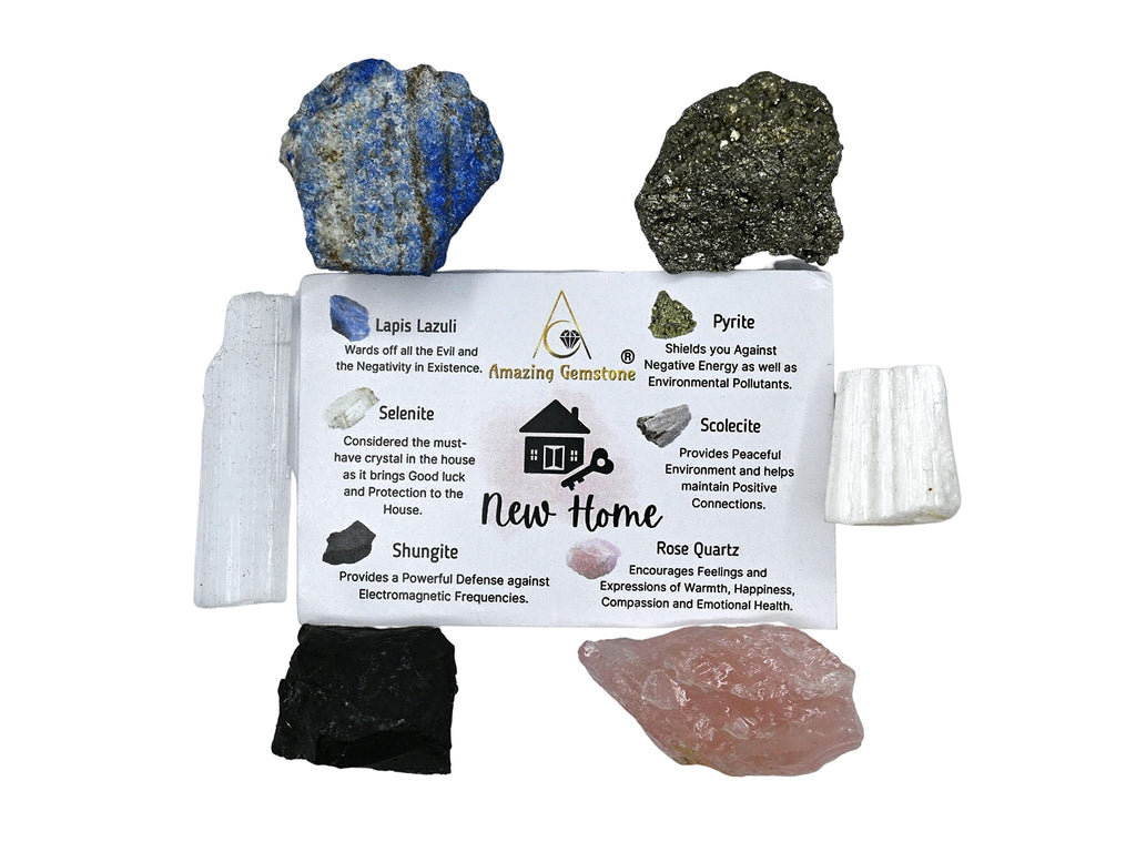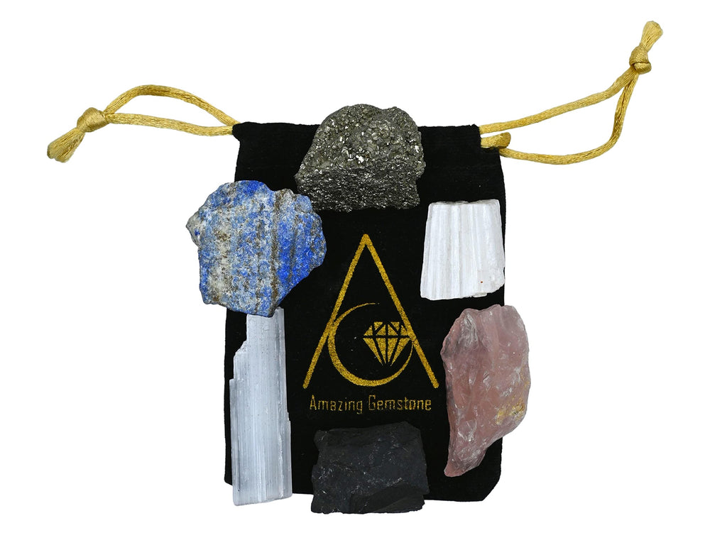 • Q: What are the main healing crystals included in this set? A: This set includes Lapis Lazuli, Selenite, Shungite, Pyrite, Scolecite, and Rose Quartz, each known for their unique healing properties.