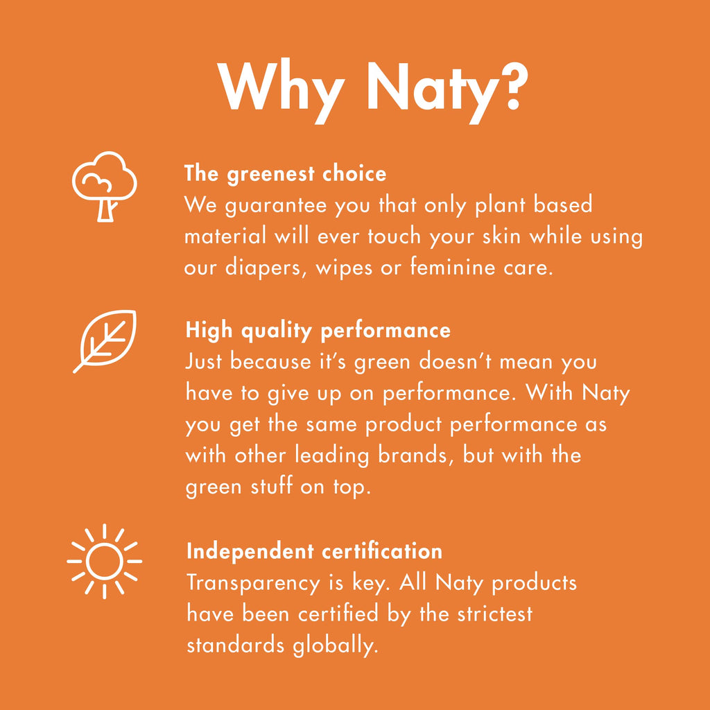 The skin is the largest human organ and it absorbs materials it comes in touch with. Our discrete Eco sanitary pads are designed to work in harmony with womens bodies and the environment; not against them. The experience of wearing Eco sanitary pads without oil based plastic and nasty chemicals will tell you all you need to know. Eco by Naty is the first and only Femcare/Inco line with 100 % earth friendly certified raw materials, including the individual wrapping and packaging.
