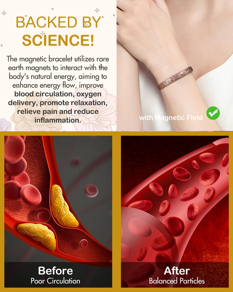 Feraco Magentic Copper Bracelet for Women,Vintage Flower Copper Cuff Bracelet,99.99% Pure Copper with Magnets,Adjustable Magnetic Bangles with Gift Box,Christmas Jewelry Gifts.INTERNAL INJURY HAZARD:Keep away from All CHILDREN,Swallowed magnets can damage internal organs and have resulted in DEATH and SERIOUS INJURIES.