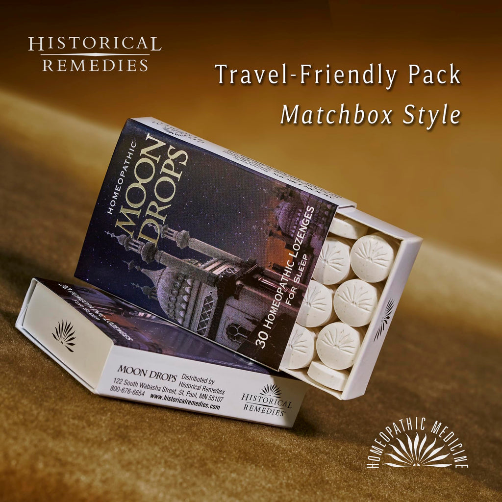NATURAL SLEEP SUPPORT IN A SOOTHING VANILLA LOZENGE: Moon Drops are homeopathic, vegan lozenges that naturally aid sleep. These lozenges calm an overactive mind and relax the body for a peaceful nights rest. Infused with organic vanilla flavor, theyre easy to take, non-drowsy, and non-habit-forming - offering effective, natural relief when you need it most, without any side effects.