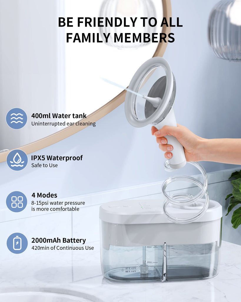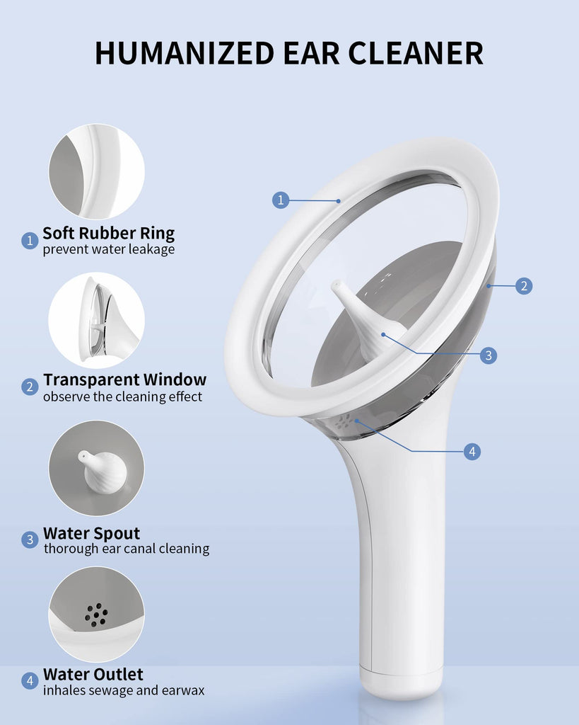 KAUGIC Ear Cleaner adopts the latest ear cleaning method, you can easily clean your ears with only one hand, and you dont need to worry about sewage collection during the ear cleaning process.